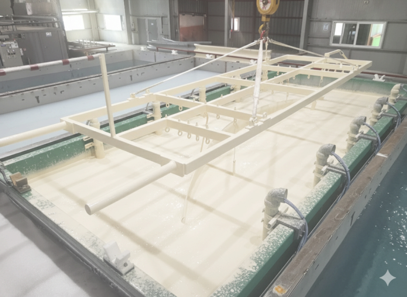 After assembly, epoxy or urethane is manually applied, resulting in uneven coating on complex shapes such as welds and cut surfaces.